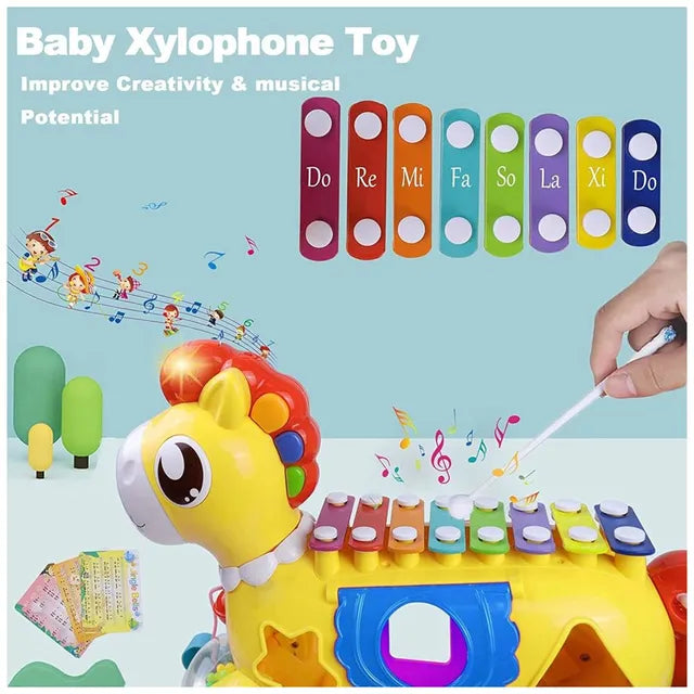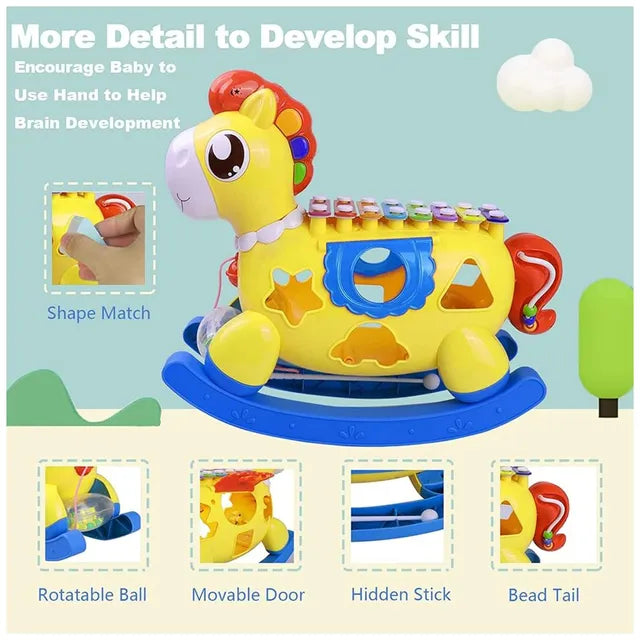 لعبة حصان هزاز للأطفال مع إكسيليفون وأداة فرز الأشكال